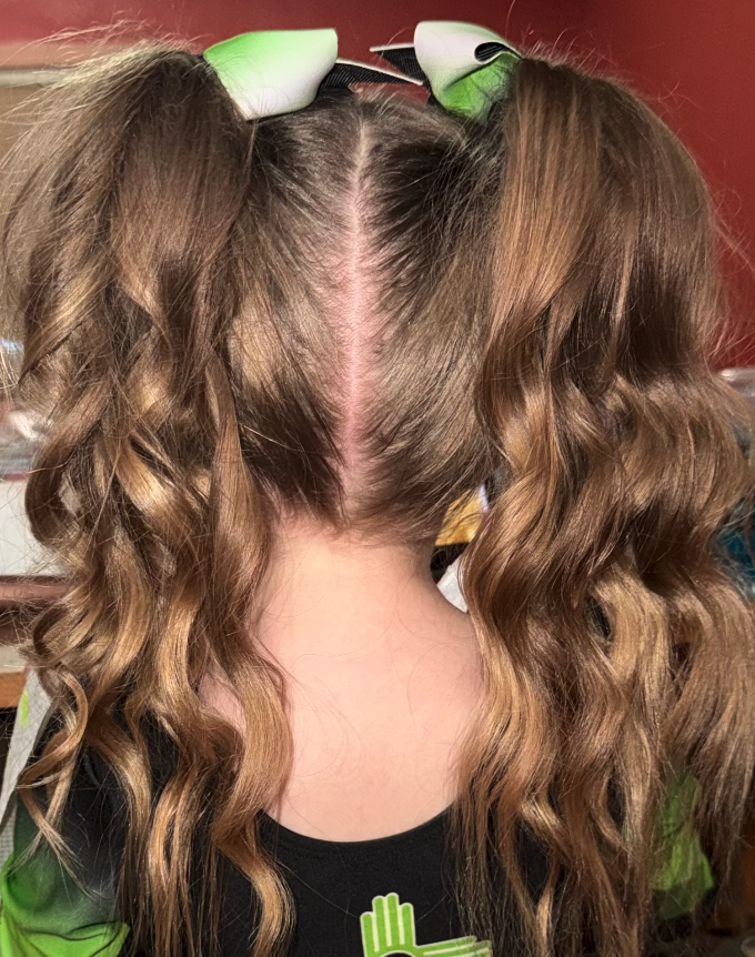 High Pony Tail Curled with Bow to the front -