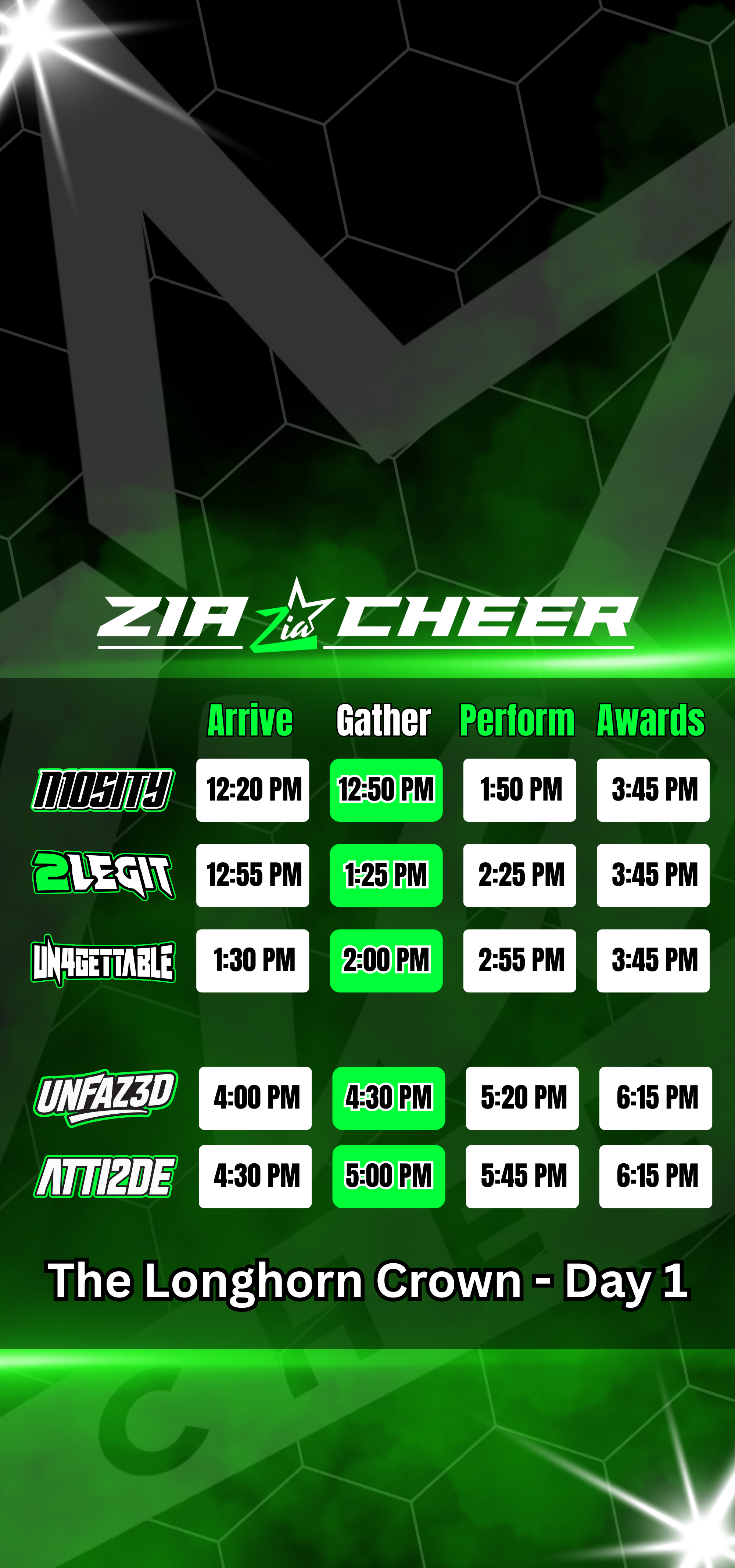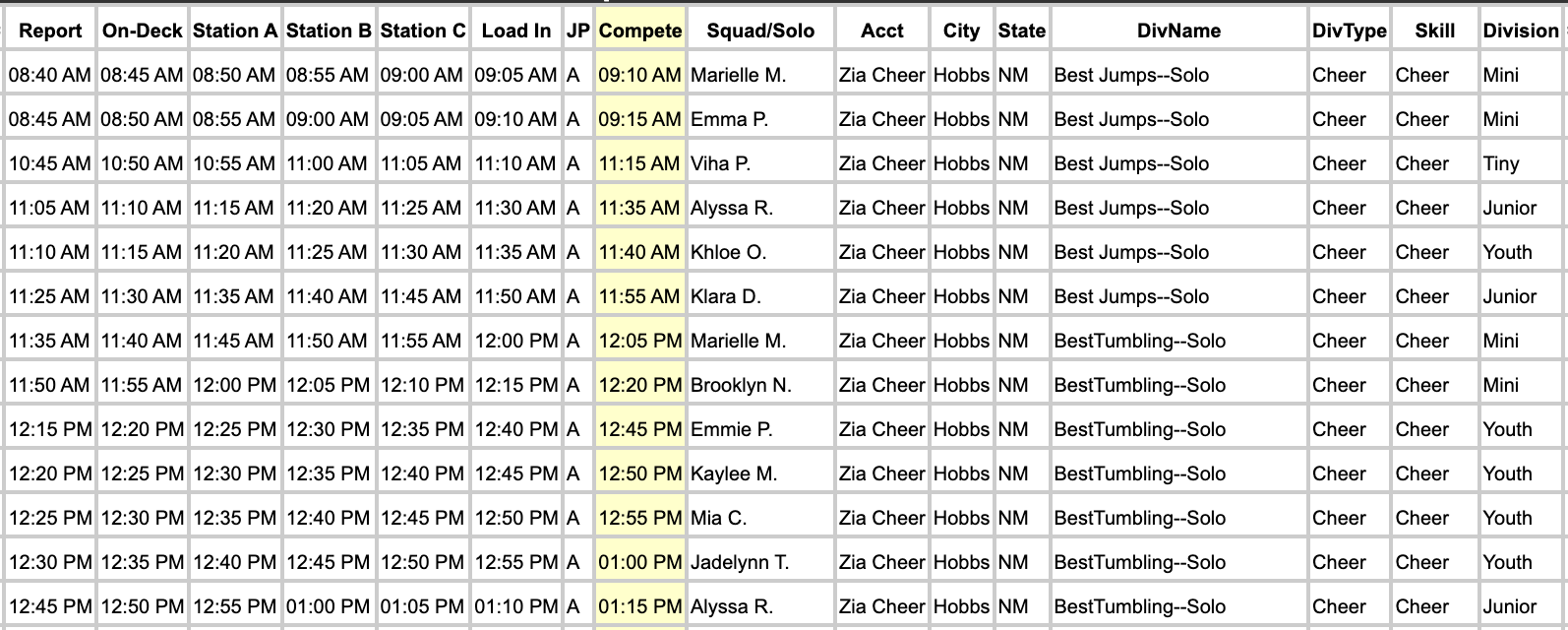 Schedules can change, and exact times will be confirmed the week of the competition..